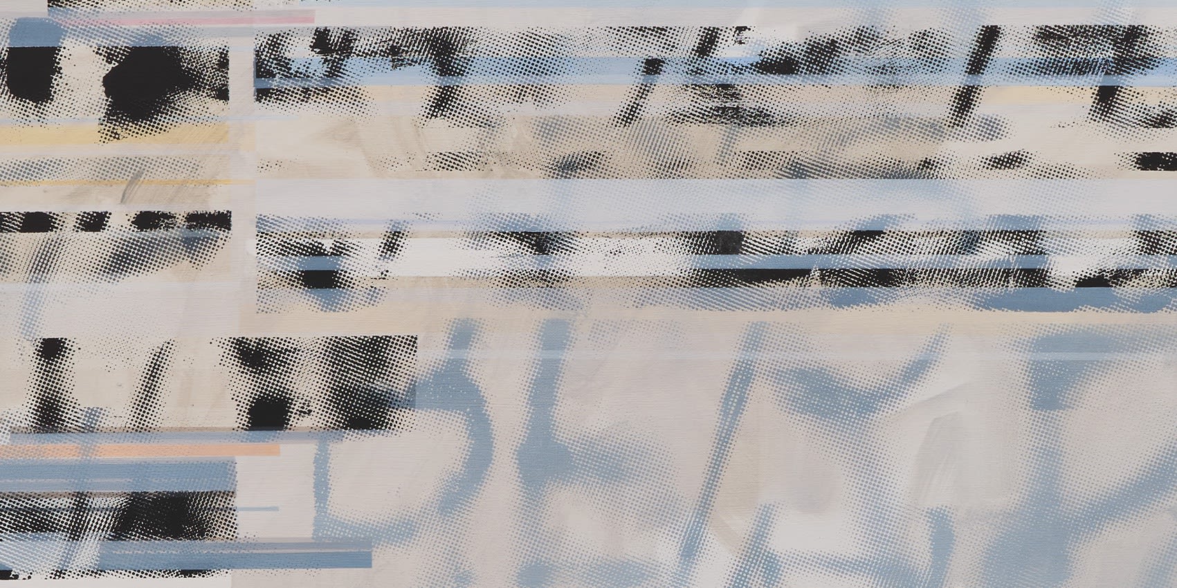 The surfaces of her paintings unfold like palimpsests, built through gestures of concealment and revelation. Areas of the canvas are masked or overwritten, leaving behind traces, glitches, and interruptions. Some marks feel fluid and direct, others are obscured or fragmented, like half-formed thoughts. This rhythm of layering could be suggested to mirror the psychological processes we all move through: absorbing, editing, repressing, and resurfacing.